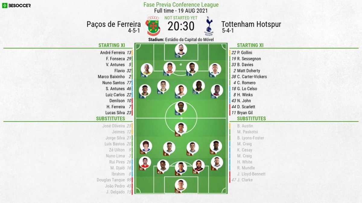 Tottenham travel to Portugal to face Pacos Ferreira on Thursday night in the first leg of their Europa Conference League playoff tie for a place in the competitions group stage. Le coup denvoi de ce match sera donne a 20h45 le jeudi 26 aout 2021. Tottenham Hotspur vs Pacos de Ferreira betting tips predictions Tottenham Hotspur are 19 to win with Pacos de Ferreira priced at 161 to come away with the victory.